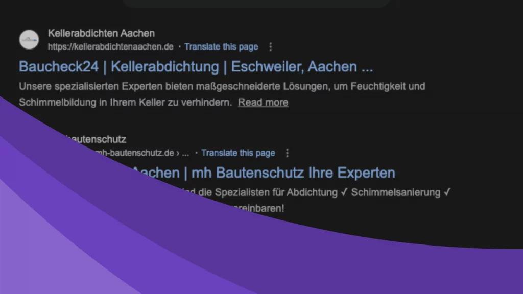 Einer unserer langjährigen Kunden, für den wir die Webseite, den Blog, Google Ads und SEO betreuen. Inzwischen erreichen wir organisch Platz 1.“